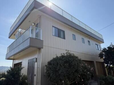 阿南市の外壁塗装ビフォーアフター事例|植栽と調和するやさしいツートンカラー