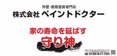 徳島市の外壁・屋根塗装専門店、株式会社ペイントドクターです。当社では「家の寿命を延ばす 守り神」というキャッチコピーを掲げ、住宅塗装に取り組んでいます。