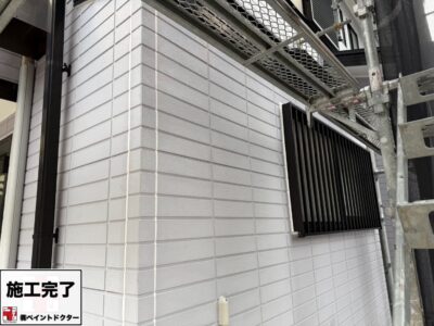 ペイントドクターでは、状態に応じて既存コーキングをしっかり剥がし、新しいコーキングに打ち替える作業を行っています。下地処理から行うことで、サイディングの継ぎ目からの雨水侵入を抑え、塗装だけに頼らない防水の土台づくりを心がけています。