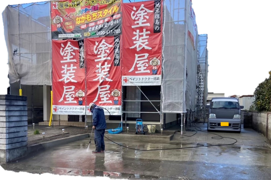 ペイントドクター徳島はこの大きな垂れ幕が目印です。