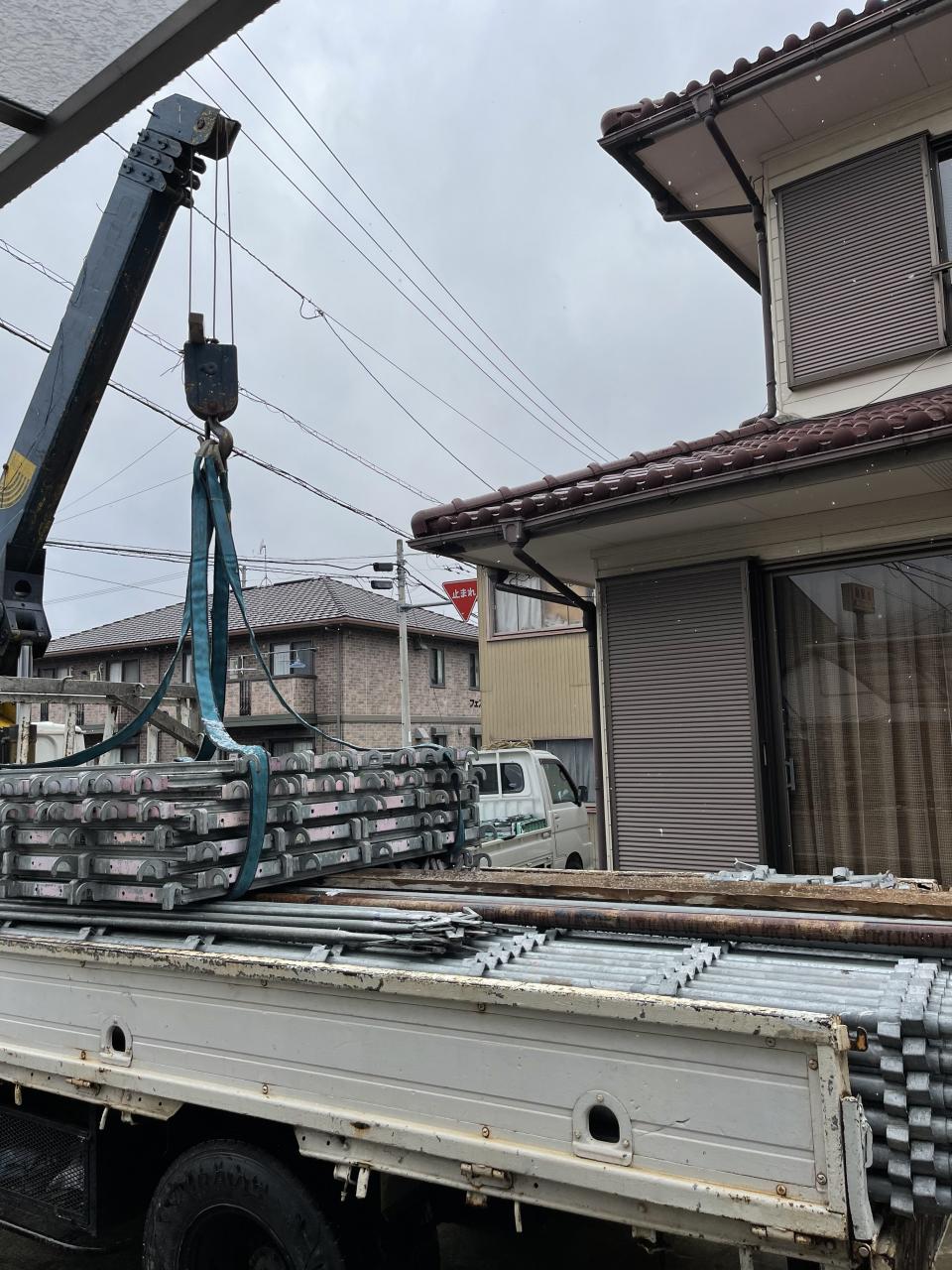 今日は、凄く寒いですね。今日は、徳島市の佐古町のK様邸の足場着工です。凄く寒いのですが、頑張ってくれています。