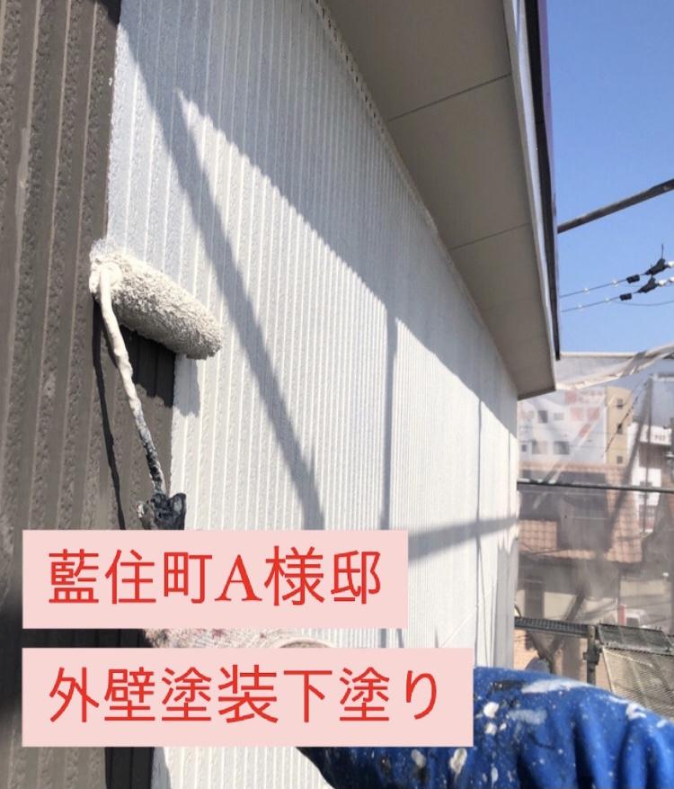 佐古町K様邸、高圧洗浄が終わり下地処理をし