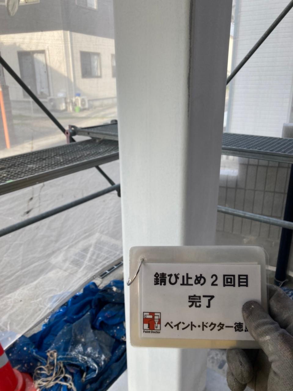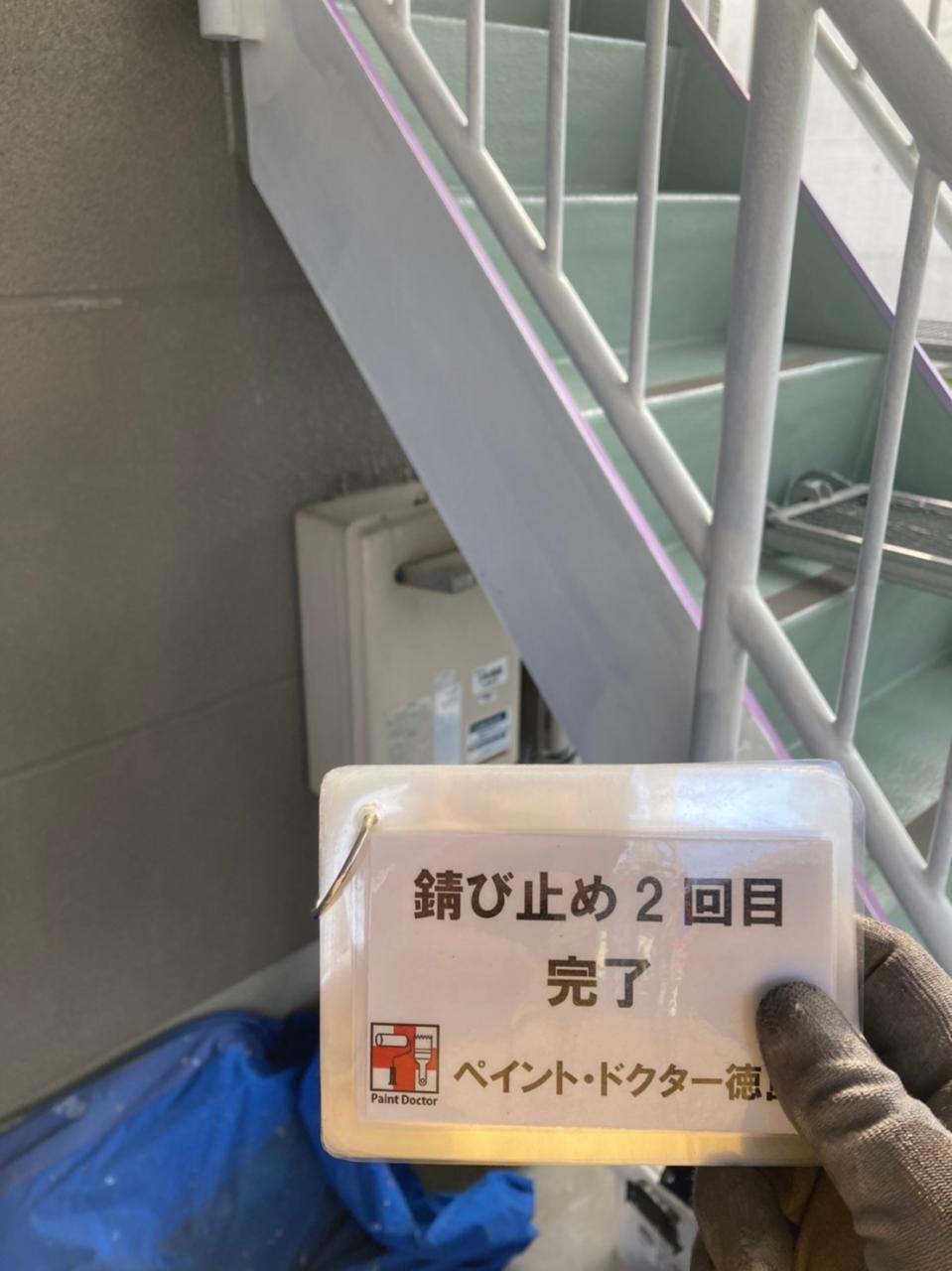 徳島市E様邸、鉄部錆び止め2回目完了です。