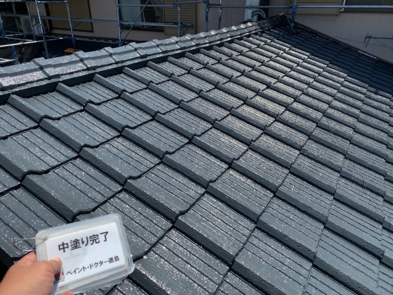 屋根中塗り塗装完了です!