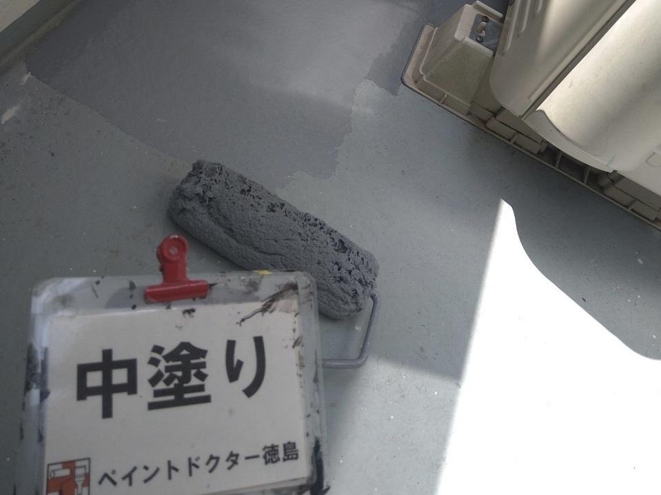 ベランダ防水の中塗りを行いました。