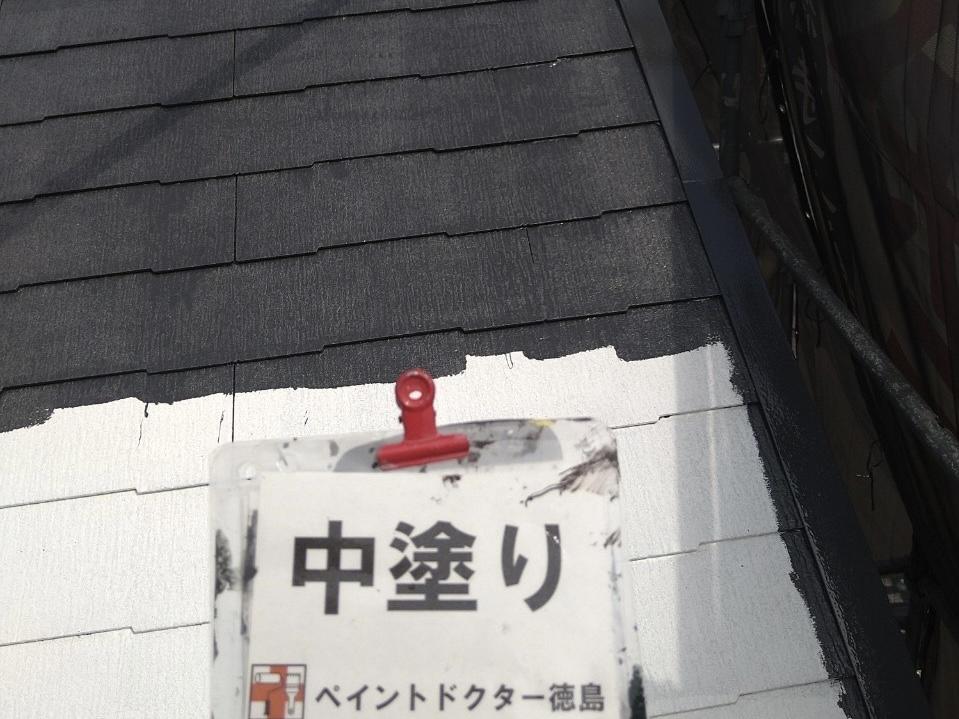 屋根の中塗りを行いました。