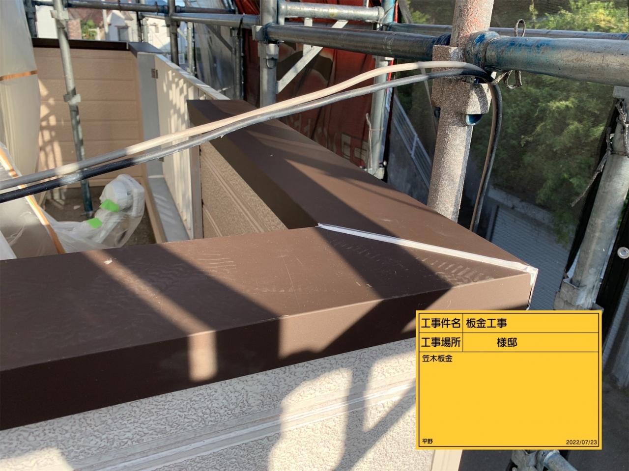 笠木部分の板金工事を行いました。