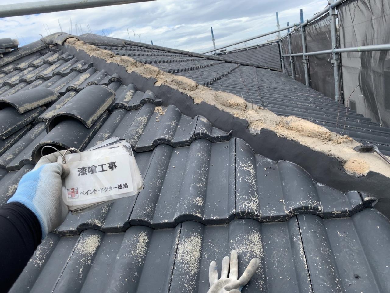 瓦屋根では瓦の固定や接着に漆喰が用いられています。