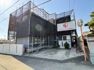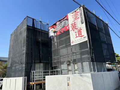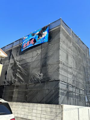 板野郡のN様邸で足場を着工致しました。イメージシートには、ポジティブなイメージを持つ鷲をあしらった新しいデザインのものを使用しており、塗装を通してお客様に幸せになって貰えるよう全力で施工して参ります。工事期間中は、ご近所の皆様にはご迷惑をおかけいたしますが、ご理解の程よろしくお願い致します。