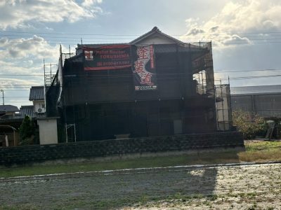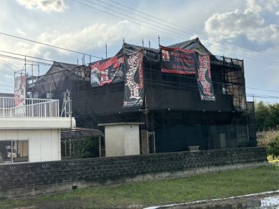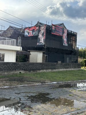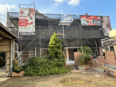 本日足場を着工した現場は徳島県内ではなく、なんと鳴門海峡を挟んだお隣。淡路島です。徳島県内だけではなく、お隣の兵庫県淡路島でもペイントドクターは愛されています。