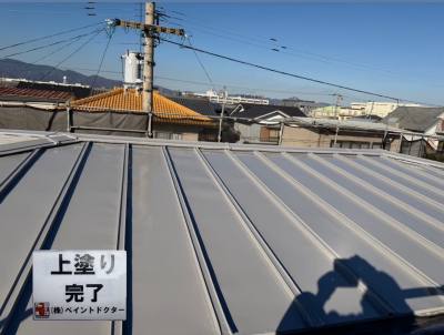 屋根:下塗(浸透/エポ)→上塗(遮熱シリコン/フッ素、2液比率高め)。