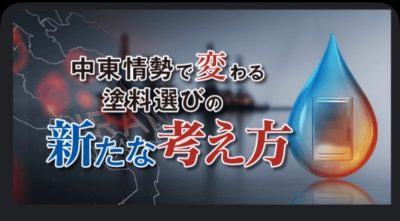 徳島市の塗装店ペイントドクターです。今回は、中東情勢の影響によるシンナー不足と、それに合わせた塗料選びの考え方についてお伝えします。